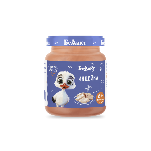 мясо индейки, вода питьевая, мука рисовая (5 %), масло подсолнечное.