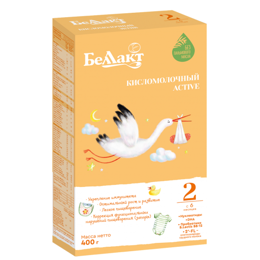 Состав смеси «Беллакт Кисломолочный Active 2» соответствует современным мировым тенденциям в питании детей раннего возраста, стандартам и требованиям к производству детских смесей.