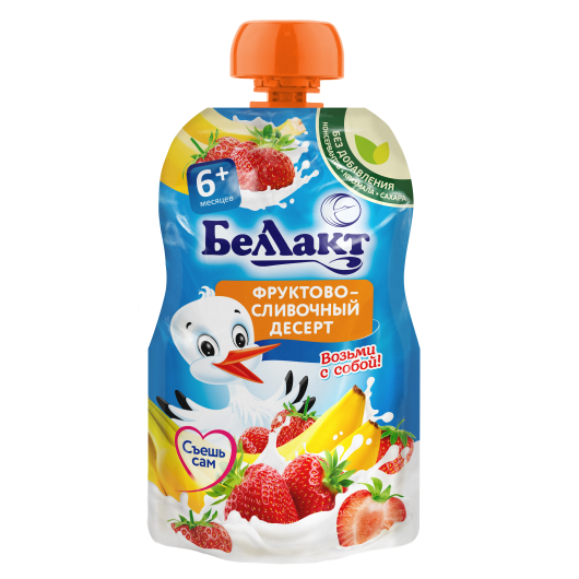 Фруктово-сливочный десерт из сладкого банана и спелой клубники с добавлением сливок придают пюре неповторимый нежный вкус.