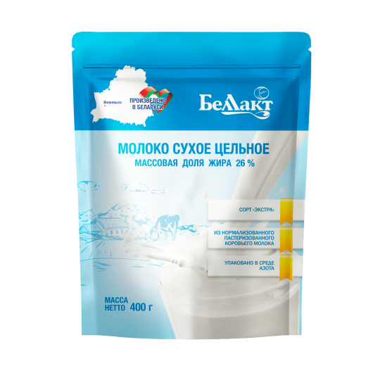 Сухое молоко изготовлено из нормализованного пастеризованного коровьего молока путем высушивания на распылительной сушильной установке. Упаковочный газ - азот.