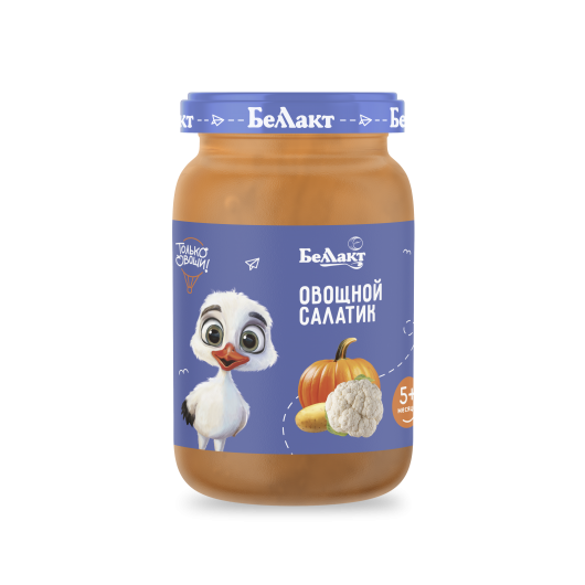В состав «Овощного салатика» входят цветная капуста, картофель и тыква. Основным компонентом является цветная капуста – 50%.
