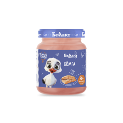 В ассортименте детского рыбного пюре «Беллакт» представлена гомогенизированная однокомпонентная продукция из форели, хека и семги. Каждая баночка рыбного пюре «Беллакт» – это: